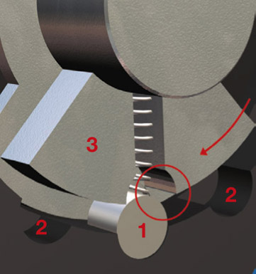 Le martelline DK Secustik® sono dotate di un meccanismo di bloccaggio brevettato come funzione di sicurezza integrata.